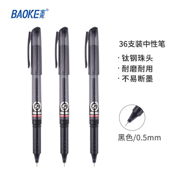 宝克(BAOKE)PC1808 中性笔全针管0.5mm 学生水笔文具用品办公签字笔 黑色 36支/盒