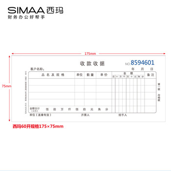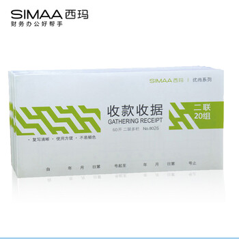 西玛(SIMAA)8026二联多栏收款收据 20组10本装 60k 175*75mm 优尚精品 无碳复写收货财务收款凭证单据本