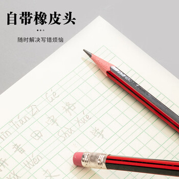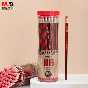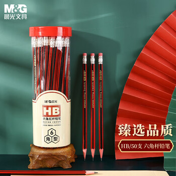 晨光(M&G)(M&G)文具HB铅笔50支 红黑抽条六角木杆铅笔 学生开学书写美术素描绘图木质铅笔带橡皮头AWP308D5