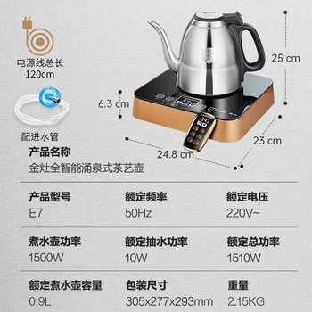 金灶(KAMJOVE)全智能煮水壶 恒温烧水壶全自动上水电热水壶保温 家用遥控电茶壶316不锈钢电茶炉E7
