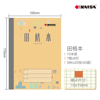 凯萨(KAISA)田格本36K/20张 7格9行加厚纸田字格生字本幼儿园小学生作业本田字本软抄本10本装 KSP-0012