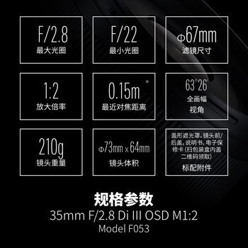 腾龙(Tamron)F053S 35mm F/2.8 Di III OSD M1:2微距 标准定焦 人像 纪实 扫街全画幅微单镜头(索尼全幅E口)