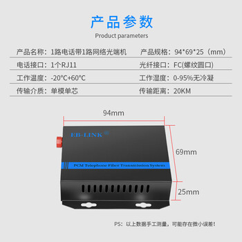 EB-LINK 电话光端机1路电话+1路百兆网络PCM语音音频对讲电话收发器光纤传输器FC接口
