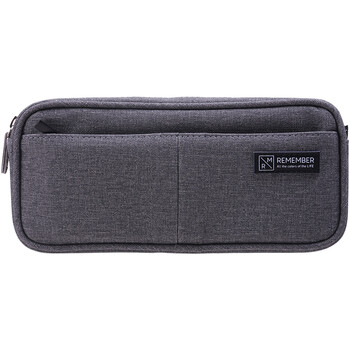 得力(deli)多层大容量笔袋 仿亚麻多功能铅笔收纳袋/商务包 学生文具盒 高级灰开学必备