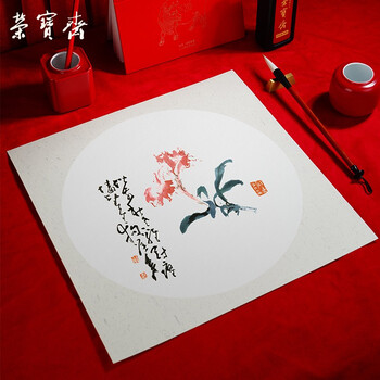 荣宝斋 书画宣纸卡纸 日星宣纸国画扇面工笔画书法水彩画软卡圆形方形 生宣-外方内圆-外麻33*33
