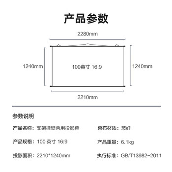 MR.RIGHT 壁挂+支架两用 玻纤投影幕 增益1.2 100英寸16:9投影仪幕布 8K高清投影仪幕布 免安装 平整不卷边