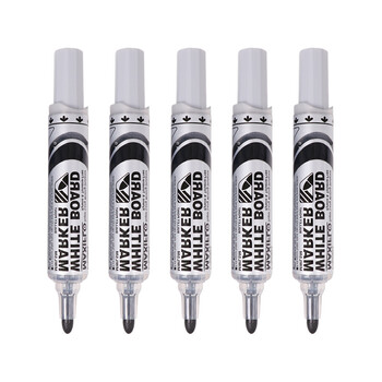 派通(Pentel )白板记号笔 2mm直液式粗字圆头 可擦马克笔进口 MWL5M 黑色(5支装)