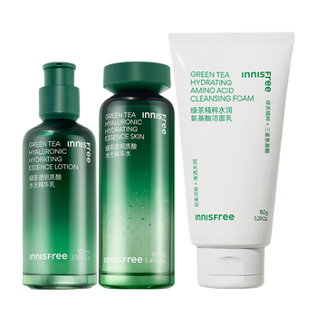 悦诗风吟(innisfree)绿茶透明质酸水光精华水乳洁面160ml+100ml+150g送女友礼物