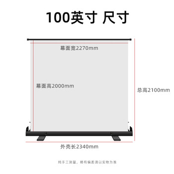 鲸米(JINGMI)投影幕布100英寸16:9地拉幕布全面屏手动地升幕布G1白玻纤家用办公户外便携移动投影仪屏幕