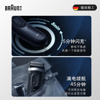 博朗(BRAUN)【便携出游】新3系德国进口刀头往复式剃须刀电动刮胡刀送老公男朋友生日礼物 男