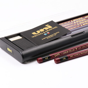 uni三菱 金装铅笔8H 原木杆铅笔书写绘画素描设计 12支/盒(含橡皮)1887