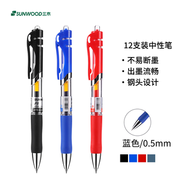 三木(SUNWOOD)效率王系列 中性笔签字笔 0.5mm子弹头经典办公按动笔水笔 蓝色 12支/盒 P5