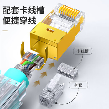 万级八类万兆水晶头Cat8网线接头6个装 屏蔽RJ45水晶头保护套工程级网络连接器三件式WJ-15721