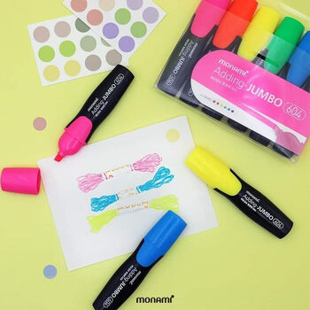 【开学必备】慕那美(monami)荧光笔学生用方头重点标记笔记号笔手账笔 4色套装06020Z04