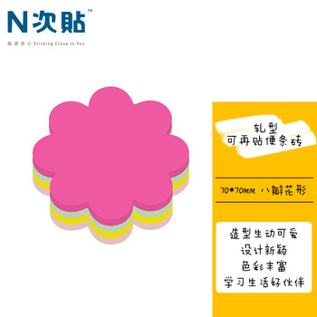 N次贴(STICKN)160张4色可爱造型便利贴异形便签纸百事贴记事贴70*70mm 八瓣花形33024