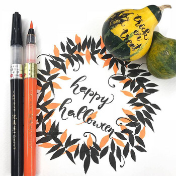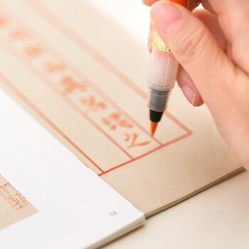 吴竹(KURETAKE)原装进口进口科学毛笔自带墨水超大墨囊朱红科学毛笔 中楷朱红 XO50-070S