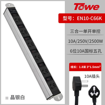 TOWE同为分控炫彩系列PDU工业级插座6位分控 EN10/C66K晶银白
