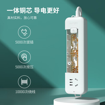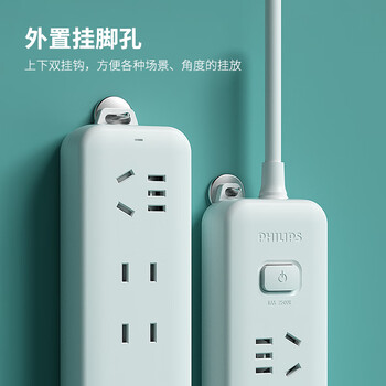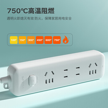飞利浦(PHILIPS)插座 4位组合孔 1.6米 儿童保护门 插线板/插排/排插/接线板/拖线板