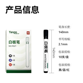 天章 (TANGO)办公会议易擦白板笔10支组合装(7黑2红1蓝)办公文具耐磨耐用老师培训教学 9521