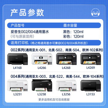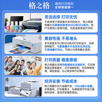 格之格适用爱普生004墨水 L3251 L4168 L3258 L3255 L3153 L4266 L3158 L3151 L4268 L4269 L3256打印机墨水 四色装