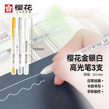 樱花(SAKURA)(SAKURA)动彩笔金银白3支装 高光笔中性笔水性笔波晒宝珠签字笔【日本进口】