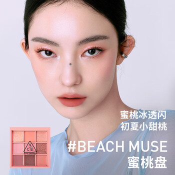 3ce九宫格九色眼影盘蜜桃冰沙BEACHMUSE蜜桃盘哑光生日礼物送女友