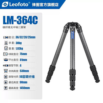 徕图(Leofoto)三脚架 摄影摄像影视摄像机单反微单专业拍鸟重型设备无中轴三脚架 LM-364C(单脚架)