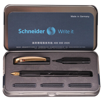 施耐德(Schneider)钢笔宝珠笔直液式套装 双笔尖两用签字笔 男女生日礼物 云石系列-多瑙河黑