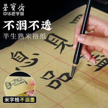 荣宝斋 米字格宣纸毛边纸 日星宣纸半生熟仿古书法专用练习作品 初学者毛笔字帖 竹浆纸6*60格/70张