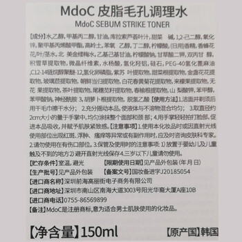 蒙度士(MdoC)男士控油爽肤水150ml(油脂调理清爽收缩毛孔淡化送男友)