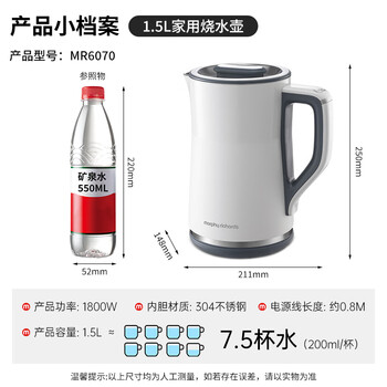 摩飞电器(Morphyrichards)电热水壶烧水壶热水壶 家用恒温水壶1.5L不锈钢304双层防烫实时显温开水壶MR6070白