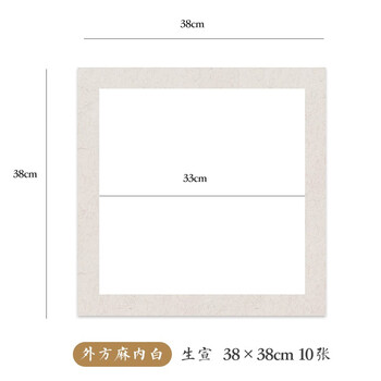 一海堂文化 宣纸 卡纸文房四宝国画书法绘画装框用硬卡方形镜片纸 方形外麻内白-生宣 38*38cm*10张