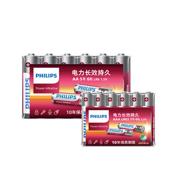 飞利浦(PHILIPS)碱性5号电池7号电池各6粒/12粒 十年聚能锁电适用玩具鼠标智能门锁/指纹锁剃须刀血压计电池5号