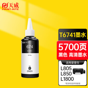 天威 T6741墨水黑色100ml 适用爱普生EPSON L805 L810 L850 L1800 L310 L360 连供R330 墨仓式打印机