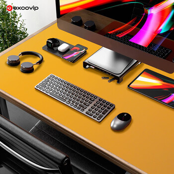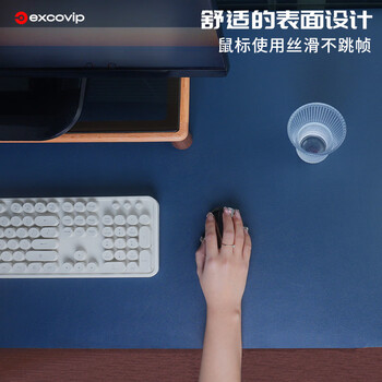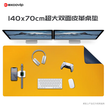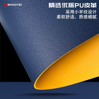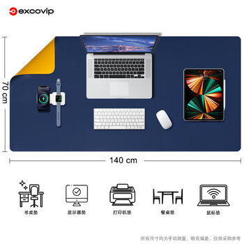 宜适酷(EXCO)1.4米蓝黄双面防水皮质鼠标垫学习书桌垫电脑办公桌垫超大号游戏键盘键垫皮革电脑桌布9789