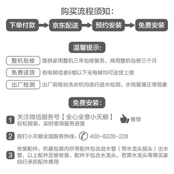 洗衣机*1,说明书*1,保修卡*1,进水管*1,运输螺栓*4