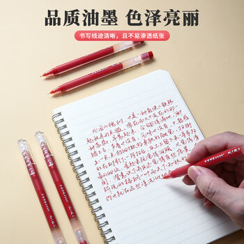 晨光(M&G)文具 拔帽中性笔0.5学生红笔签字笔商务全针管大容量水笔办公用品 红色 12支/盒