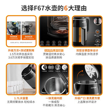 九阳(Joyoung)热水壶烧水壶电热水壶1.7L大容量 内外双钢0胶水无缝 304不锈钢水壶 K17-F67