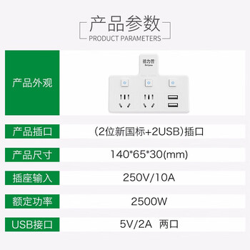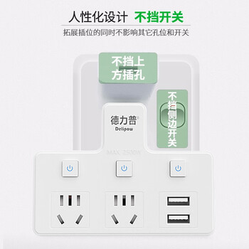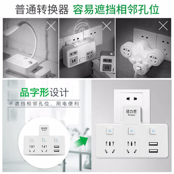 德力普(Delipow) 插座 USB转换插头/品字形一转二带USB分控/无线插座/电源转换器