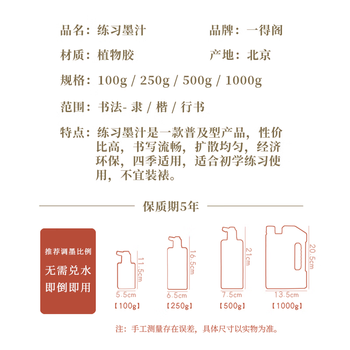一得阁墨汁练习墨汁文房四宝初学者适合练习书法国画墨汁 250g 热门商品【全网低价】