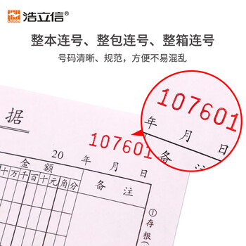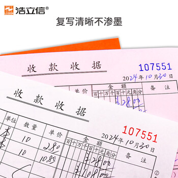 浩立信 财务单据 无碳复写收款收据 二联万位 单栏 (10本装1本50份)