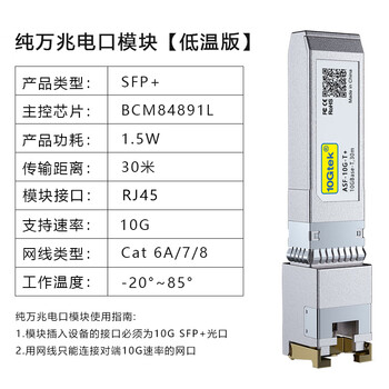 万兆通光电万兆SFP+电口光模块 光转电模块 光口转电口RJ45 光电转换模块 博通 BCM84891L芯片方案 华为