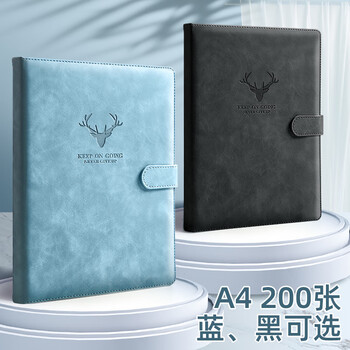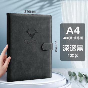 金值 A4/400页带磁扣笔记本子 商务皮面加厚记事本会议本工作本大学生简约日记本办公文具记录本 黑色