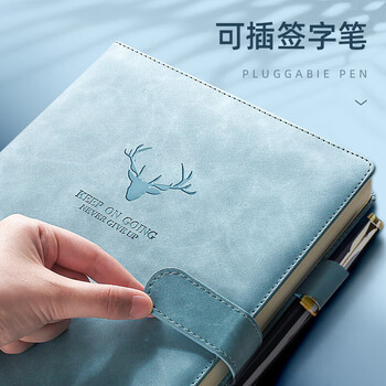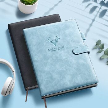 单本笔插皮面笔记本 A4 200张鹿头带扣黑