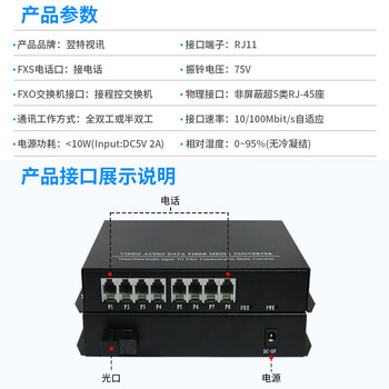 翌特视讯(ETV) ETV-8P 电话光端机 8路话PCM语音光端机光纤收发器延长器FC/SC接口