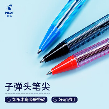 百乐(PILOT)按动圆珠笔 子弹头原子笔 防滑笔杆 BPK-P-CFB 0.7mm黑色单支装