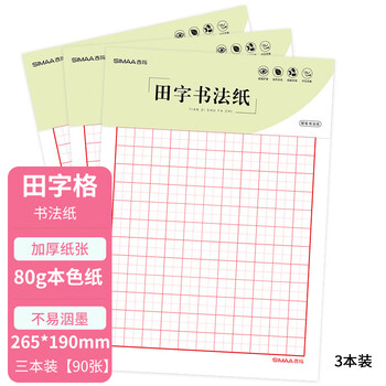 西玛(SIMAA)田字格硬笔书法纸 3本装/30张 80g加厚硬笔钢笔书法练字本8517