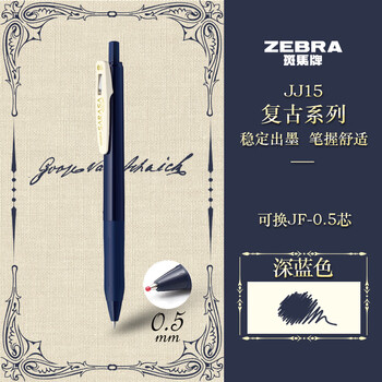斑马牌(ZEBRA)JJ15复古色系列笔 0.5mm按动中性笔子弹头签字笔 学生手账笔标记笔 JJ15-VDB 深蓝