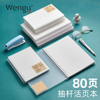 文谷(Wengu)抽拉线圈活页笔记本子分页可拆卸学生手账本记事本26孔80页可替换内芯PL014-B5方格