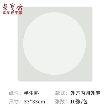 荣宝斋 书画宣纸卡纸 日星宣纸国画扇面工笔画书法画装框用软卡圆形 半生熟内圆 外麻 33*33cm
